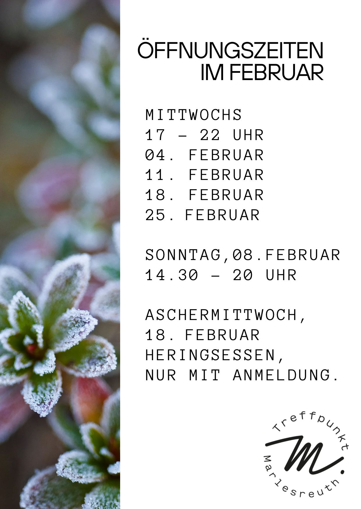 - Aschermittwoch Heringsessen, 18. Februar von 17 bis 22 Uhr – nur mit Anmeldung